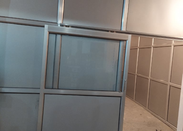 Showcasing sleek aluminium partitions in offices and shops.