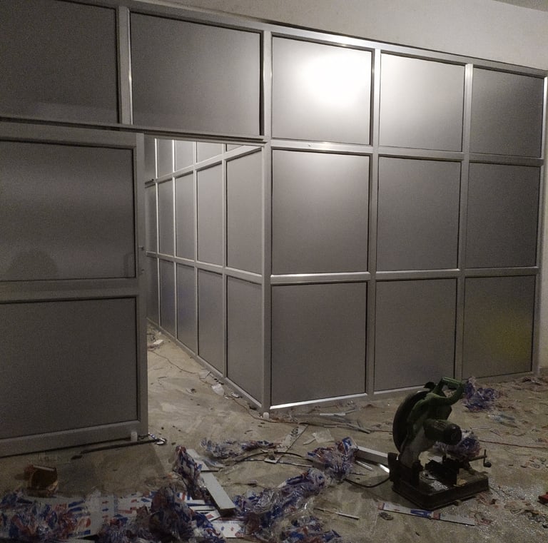 Durable aluminium partitions creating private office cabins